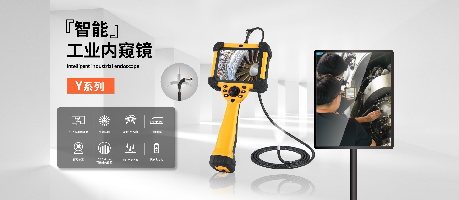 優(yōu)勢(shì)特點(diǎn):快速更換管線、百萬(wàn)像素、360°旋轉(zhuǎn)探頭、光纖照明